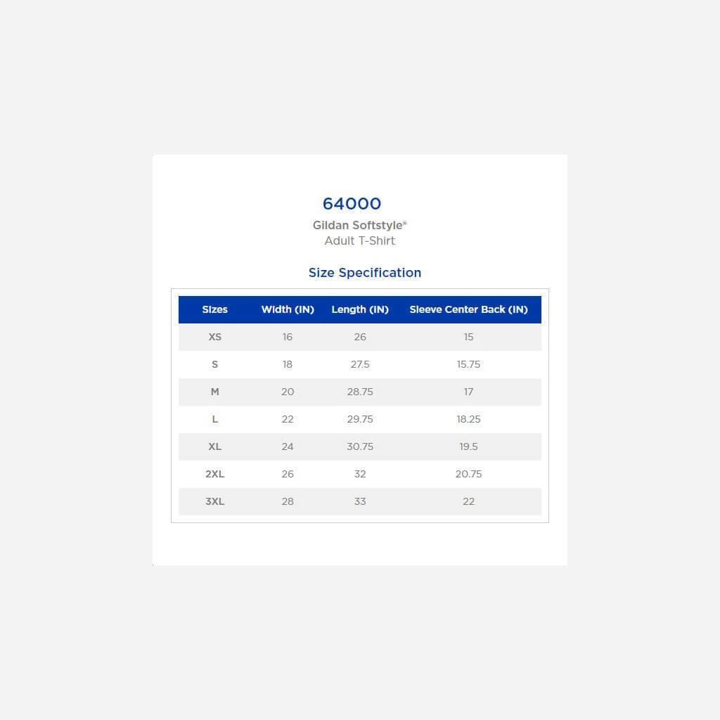 Printed on Gildan, 100% Cotton.